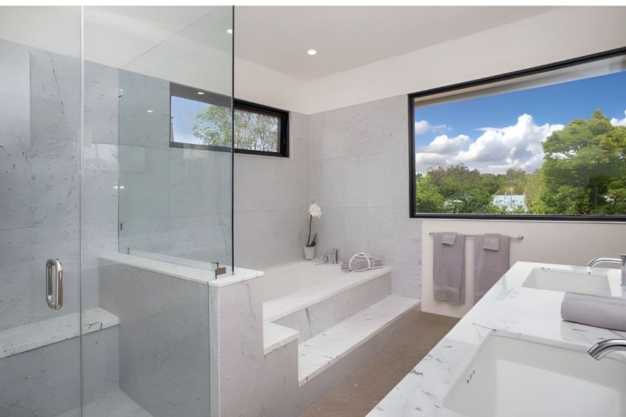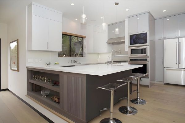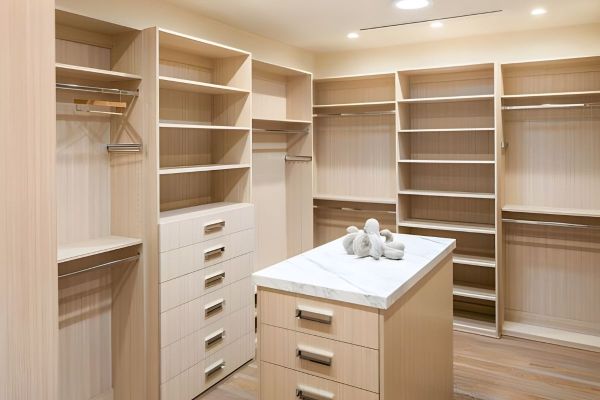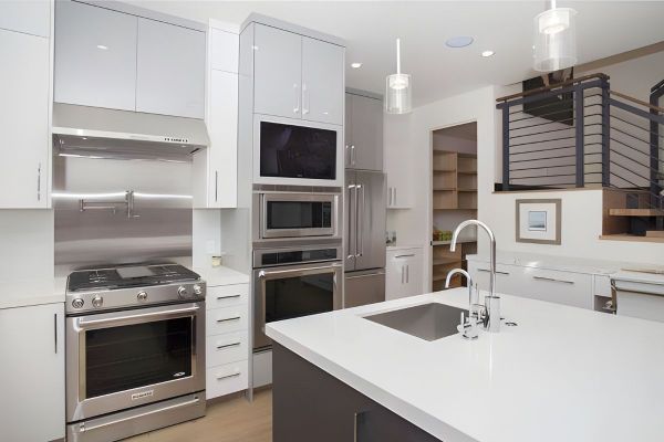 - Inside, the gourmet chefs kitchen features an enormous walk-in pantry, stainless steel appliances, large Caesarstone island, and additional marble topped workspace with storage.