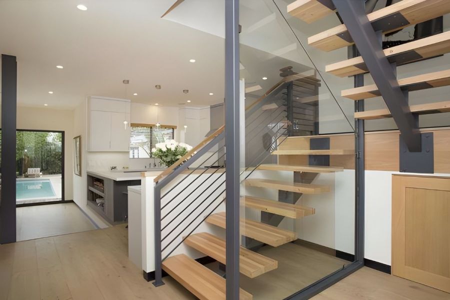 Complete renovation and two story addition for a highly motivated young developer with very interesting design requirements like the beautiful open stairs